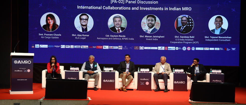 The opening panel discussion of the day was Transformative technologies reshaping the MRO operations in the convergence of Civil and Military was moderated by Col. K V. Kuber (Director - Aerospace and Defense, Ernst and Young LLP). Lt. Gen. Ajay Kumar Suri, AVSM spoke about the emerging trends in the MRO industry in terms of increasing supportive government policies and increasing participation of the private players in the industry, which is especially visible in the last 4-5 years. He indicated that in terms of Global Market share of MRO industry, which is about 100-billion-dollar, India's share is a meagre 2%! And out of this, the helicopter MRO constitutes only 75-million-dollar market which simply means that there is a huge gap that needs to be filled. He also emphasized the importance of setting up framework for block chain technology. AVM KAA Sanjeeb, VSM (Assistant Chief of the Air Staff (Maintenance Plans), Indian Air Force) said that Air Force has 46 projects approximately that promote synergy between military and civil MRO and DIG Jamal Taha, TM (Principal Director (Air Material), Indian Coast Guard) touched upon the subject of synergy of aircraft operation amongst the three National Defense Forces. AM Sukhchain Singh (Retd.,) (Former Air Officer-in-charge Maintenance) talked about the upcoming technologies like Artificial Intelligence, Data Analytics, Robotics, Additive manufacturing and also spoke about success story of the country in terms of LCA (Light Combat Aircrafts) and subsequent version of the LCA. At the conclusion of this panel, Shri. Bharat Malkani (Chairman, Max Aerospace and Aviation Limited) emphasized for synergy in communication systems, electrical systems and other similar components that are common to all aircraft. The panel also touched upon the issue of low budgetary allocation to the Ministry of Civil Aviation. The esteemed panelists in unison agreed to set up a task force of experts from defense, financial advisors, industry experts to frame up the policies.